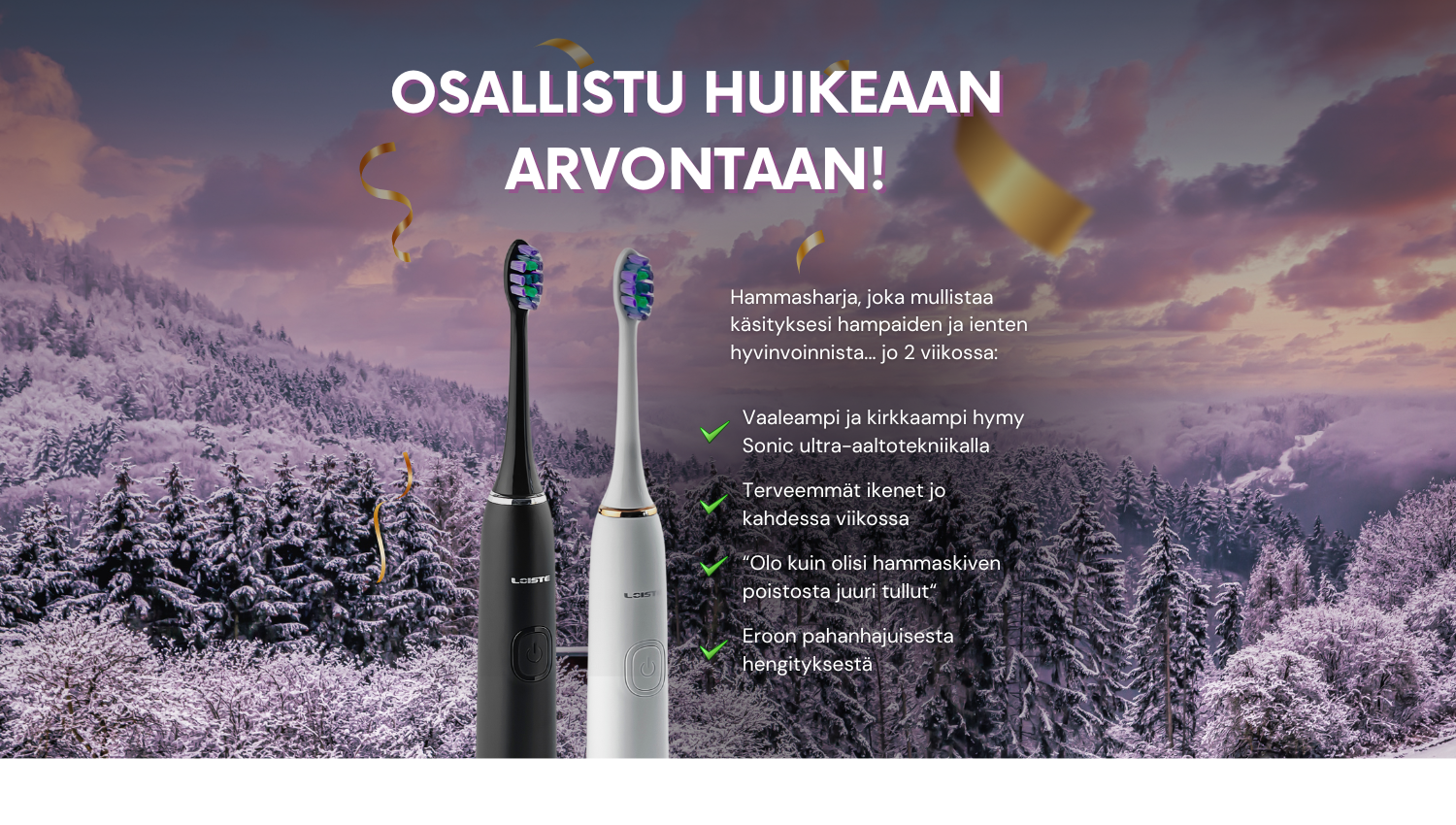 Pääpalkintona jaamme yhdelle onnekkaalle Loiste-hammasharjan ilmaiseksi (arvo 199€). Lisäksi jaamme useita henkilökohtaisia alennuksia kauppaamme. Tästä arvonnasta et halua jäädä paitsi!